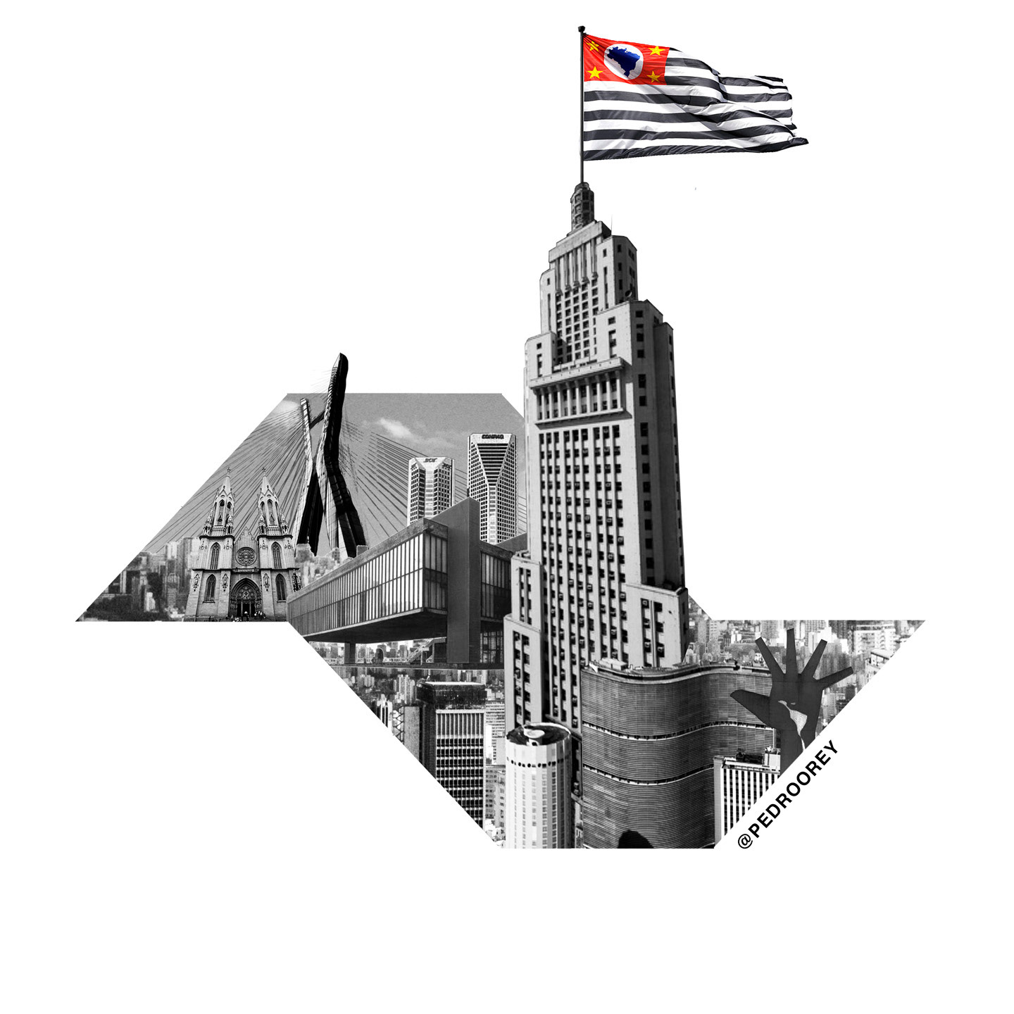 Colagem feita com fotografias da cidade de São Paulo para design de um poster comemorativo ao aniversário de 465 anos da cidade.